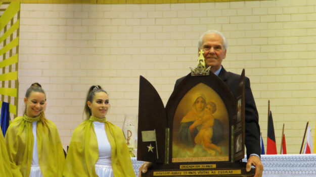 Ir. M. Nilza P. da Silva/Ir. M. Jéssica Dombrovski – O dia de Nossa Senhora Aparecida e das crianças foi especial no Santuário Original: A Santa Missa, das 17 horas, foi em português, presidida pelo Pe. Alexandre Awi, presidente da Presidência Internacional. A solene Santa Missa foi em honra de Nossa Senhora Aparecida e…