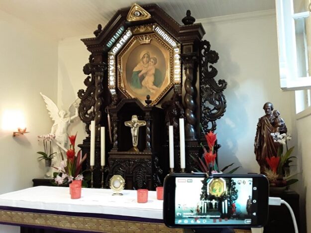 A tecnologia une os corações na jornada de adoração Karen Bueno – A Família de Schoenstatt de Santa Cruz do Sul/RS tem promovido e dedicado muitas horas de oração nos últimos meses. Vivendo o período de “bandeira preta” e, por isso, vinculados por transmissão online, vários membros do Movimento se unem espiritualmente ao Santuário…